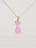 El charm Salem es un charm o colgante de un gato de doble cara o reversible. Un lado bañado en oro de 18kt y otro en enamel rosa. 🐈⬛