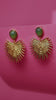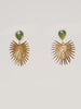 Los Pendientes Catalina son unos pendientes dorados con un diseño radiante en forma de sol, acompañados de una piedra ovalada en tono verde en la parte superior. Su estilo original será perfecto para tu próximo evento. 💚